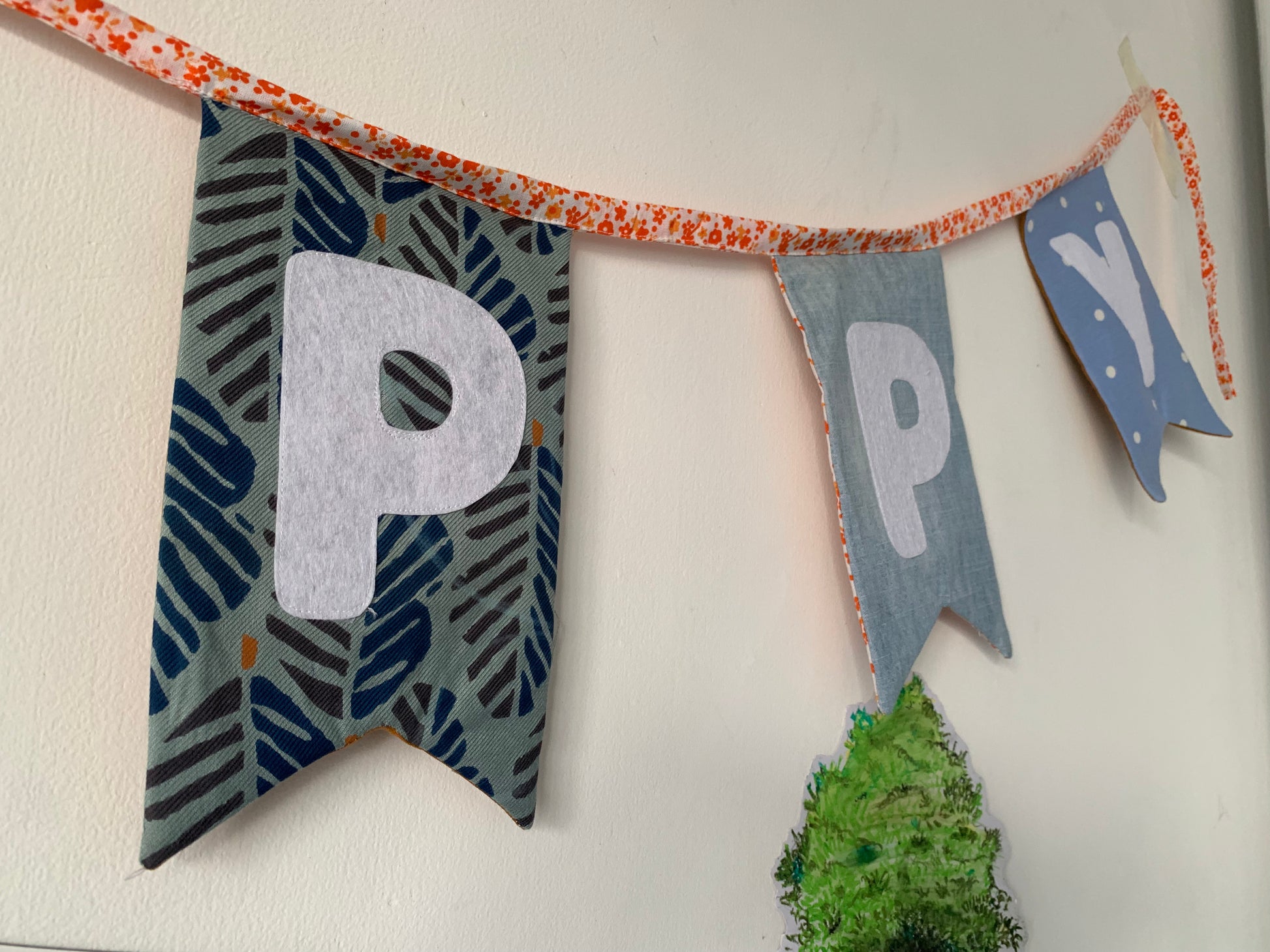 Made using fabric leftovers and reclaimed textiles, each pennant carries its own charm through earthy tones, florals, checks, and hand-appliquéd letters. No two buntings are exactly alike, making every piece uniquely yours.